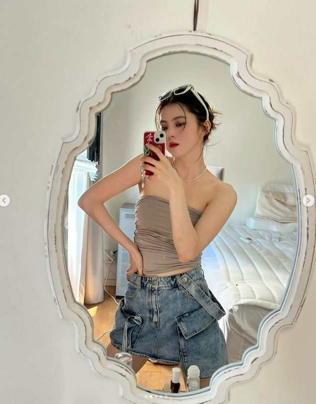 공개된 사진에서 한소희는 튜브톱에 청치마, 선글라스를 착용한 여름 캐주얼 패션을 선보였다.