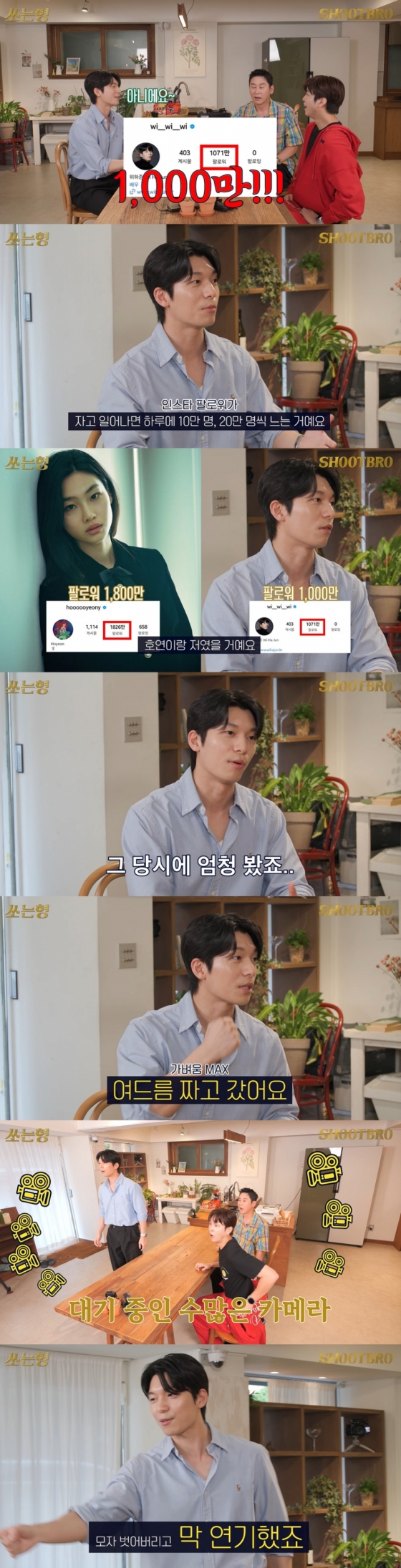 이에 위하준은 "일단 보여지는 수치가 하루가 다르게 올라갔다. SNS 팔로워가 1000만이 됐다. '오징어 게임' 때문에 그때 당시에 바짝 잠깐이었다. 자고 일어나면 하루에 10만 명, 20만 명씩 늘었다. 아마 그 해에 제일 단기간에 팔로워가 많이 늘은 게 정호연과 나였을 거다. 그 다음에 이제 엄청 빠졌다. 그 당시에는 엄청 봤다"라고 전했다.