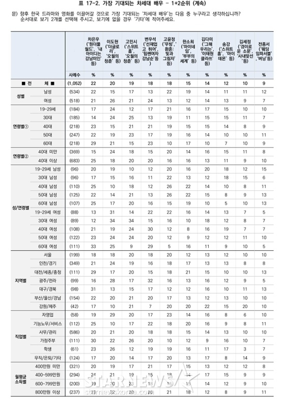 [스타뉴스 창간 20주년 한국갤럽 '가장 기대되는 차세대 배우' 설문 결과]