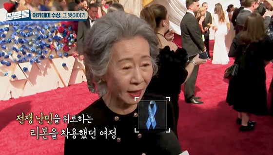 윤여정은 "자발적 착용이었나"라는 손석희의 물음에 "주최 측에서 '달지 않겠냐' 해서 달겠다고 한 거다"라고 답했다.