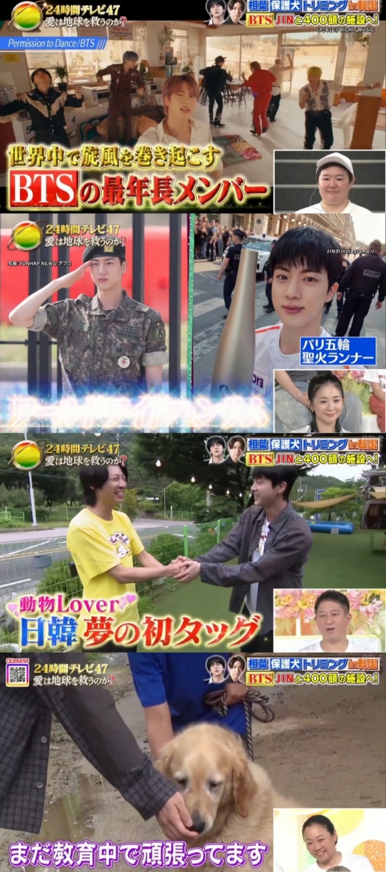 진은 8월 31일(현지 시간) 일본 '니혼TV'(NTV)에서 매년 여름 방송하는 유명 대규모 자선 프로그램 '24시간 TV'에 출연했다. 출연자들이 입는 티셔츠는 매년 디자인이 달라지며, 판매한 금액을 기부한다.