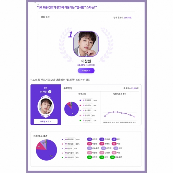 가수 이찬원이 건조기 광고에 어울리는 섬세한 스타 1위에 오르며 인기를 빛냈다.