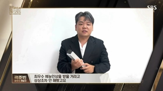 촬영 스케줄로 인해 불가피하게 '제51회 한국방송대상' 참석을 못 하게 된 곽준빈은 영상을 통해 수상 소감을 남겼다. 그는 "방송인들의 축제에서 최우수예능인상을 받을 거라 상상조차 못 했다"라고 전했다.