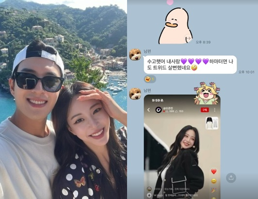 배우 한예슬이 남편 류성재와 깨가 쏟아지는 메시지 내용을 자랑했다.
