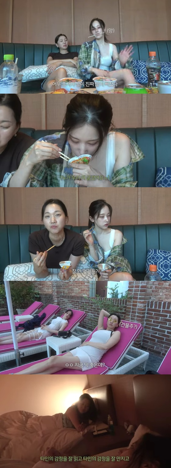 두 사람은 호텔에서 컵라면을 먹기로 했다. 장윤주는 컵라면을 먹기 전 소파에 앉는 전종서를 바라보며 "종서야 살이 진짜 많이 빠졌다"고 말했다.