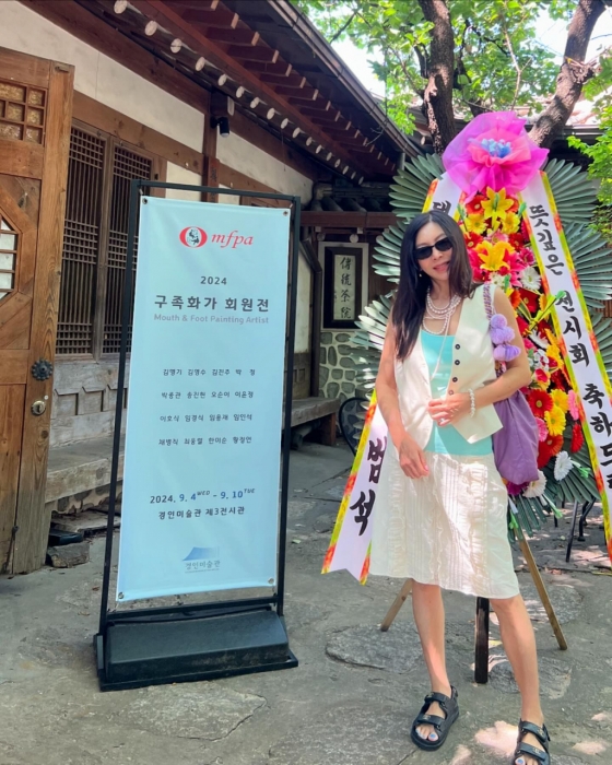 황신혜는 지난 4일 자신의 인스타그램에 "구족화가 전시회 다녀왔어요"라며 "구족화가란 선천적 또는 후천적 사고로 인해 팔을 사용하지 못하게 되어 입이나 발로 그림을 그리는 화가들을 말합니다"라고 시작하는 글과 사진을 공개했다.