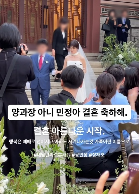 결혼식에는 공민정, 장재호가 부부로 출연했던 tvN 드라마 '내 남편과 결혼해줘'(이하 '내남결') 배우들도 참석했다. 박민영, 이이경, 하도권, 최규리 등이 하객으로 참석해 두 사람의 앞날을 축복했다.