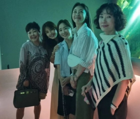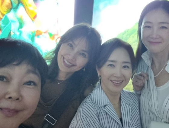 공개된 사진에는 신애라와 절친한 배우 최지우, 윤유선, 오연수, 메이크업 아티스트 이경민과 즐거운 한때를 보내고 있는 모습을 담았다.