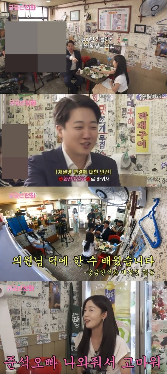 이날 이준석 의원은 '궁금한선화' 유튜브 제작진의 친분으로 한선화와 만나 한 식당에서 식사를 즐기며 여러 주제로 이야기를 나눴다. 이준석 의원은 최근 한선화가 출연한 영화 '파일럿'을 봤다고 어필하는가 하면, 한선화는 "나랑 다섯 살 차이밖에 안 난다. 실례가 안 된다면 '선화야'라고 해달라"라며 알 수 없는 분위기를 자아냈다.