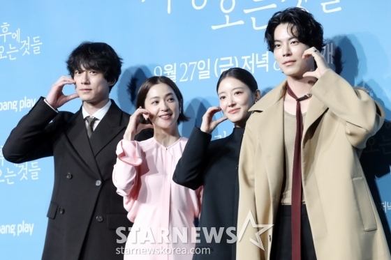 배우 사카구치 켄타로, 나카무라 안, 이세영, 홍종현이 12일 오전 서울 중구 웨스틴 조선호텔 그랜드볼룸에서 열린 쿠팡플레이 시리즈 '사랑후에 오는 것들' 제작발표회에 참석해 포즈를 취하고 있다.