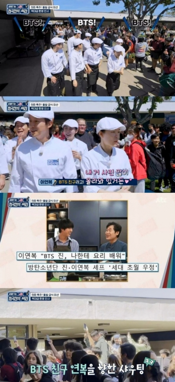 이연복은 JTBC 예능 '한국인의 식판'으로 전 세계를 누비며 '방탄소년단 진 친구'로서 유명세와 인기를 실감, 최고글로벌 슈퍼스타 진에게 고마움을 표하기도 했다.