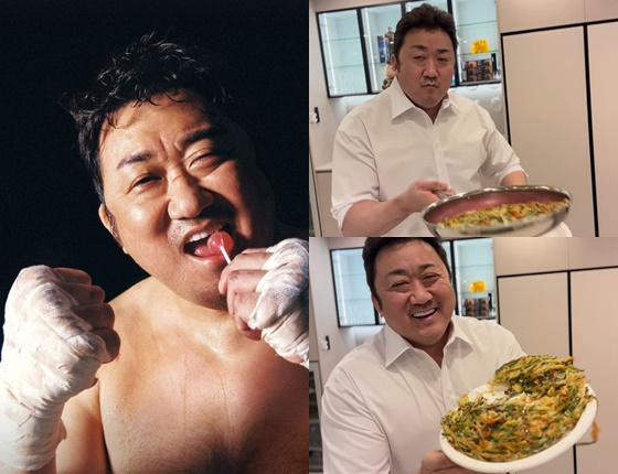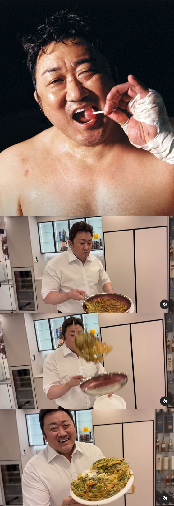 마동석은 화끈하게 완성한 전을 접시에 옮겨 담곤 환한 미소를 짓기도 했다. 인스타 스토리에 올린 또 다른 사진에선 상의를 탈의한 채 주먹을 불끈 쥔 비주얼로 팬들을 놀라게 했다. 다만 그는 특유의 순박한 웃음을 잃지 않으며 '마블리(마동석+러블리)' 매력을 강조했다.