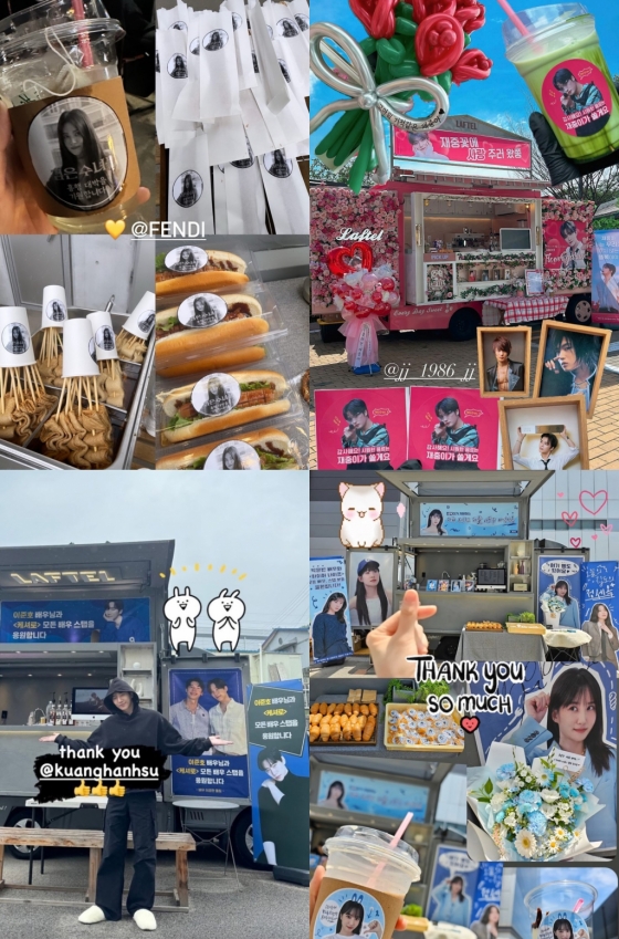 ▶팬분들이 연예인에게 조공할 경우, 작품활동을 시작하는 배우님의 소속사를 통해서 순번을 받아야 하더라고요. 순번이 된 커피차는 서포트 가능한 날짜를 받을 수 있고요. 원하는 커피차를 선정하시고 조율을 해요. 배우분끼리 보내는 커피차는 매니저님이 소통을 하세요.