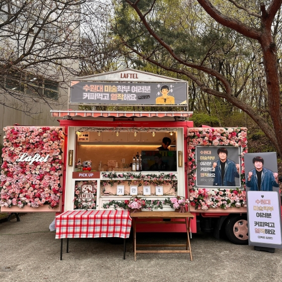 ▶가장 기억에 남는 케이스는 기안84님이 신청하신 게 기억에 남아요. MBC '나 혼자 산다'에도 나온 장면인데, 기안님이 모교 대학교를 방문했을 때 후배가 마시던 커피에 빨대를 거꾸로 꽂아서 줘서 화제가 됐는데, 이후에 기안님이 저희에게 연락을 주셔서 '후배들에게 넉넉하게 커피를 줬으면 좋겠다'면서 연락을 주셨어요. 기안님이 수원대 후배들에게 400~500잔의 음료를 선물한 거죠. 화제가 된 친구에게 저희가 '빨대 뺏기지 말아달라'며 빨대 4개를 꽂아줬어요.(웃음) 또 기억에 남는 현장은 비비님이 영화 '화란'에 출연하며 처음 배우로서 연기했던 현장이에요. 제가 커피차 운영 초반에 직접 영업하면서 팬카페 매니저님과도 소통했는데, 배우님이 '화란'으로 칸에 초청도 받으시고 본격적으로 '김형서'란 이름으로 활약을 하시게 돼서 같이 뭉클해요.
