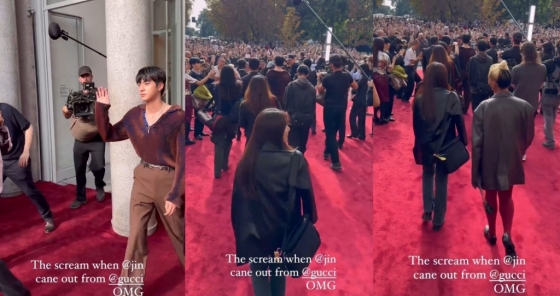 보그(Vogue)의 스칸디나비아 편집장은 "진이 구찌에서 나올 때 함성을 보세요. 오 마이 갓!"이라는 문구와 함께 자신의 인스타그램을 통해 진과 진에 구찌쇼장이 떠나갈 듯한 함성으로 열광하는 셀 수 없이 많은 팬들의 영상을 게재했다.