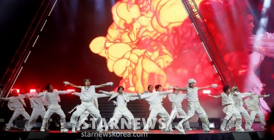 SB19, 앤팀이 필리핀 아레나에서 열린 '2023 아시아 아티스트 어워즈 인 필리핀'(2023 Asia Artist Awards IN THE PHILIPPINES, 이하 '2023 AAA')에서 멋진 무대를 선보이고 있다. /사진=김창현