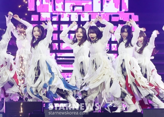 일본 걸그룹 사쿠라자카46(Sakurazaka46) 필리핀 아레나에서 열린 '2023 아시아 아티스트 어워즈 인 필리핀'(2023 Asia Artist Awards IN THE PHILIPPINES, 이하 '2023 AAA')에서 멋진 무대를 선보이고 있다. /사진=김창현