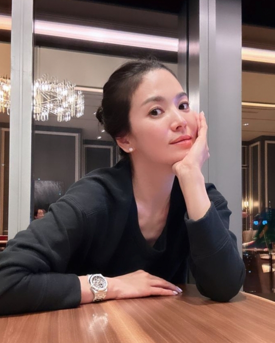 배우 송혜교가 꾸민 듯 안 꾸민 듯한 민낯 근황을 공개했다.