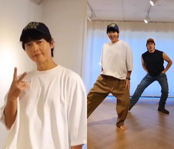 유태오의 뒤로 송중기가 깜짝 등장했고, 송중기는 유태오와 동작을 맞춰 유쾌한 분위기 속에서 댄스 챌린지를 선보였다.