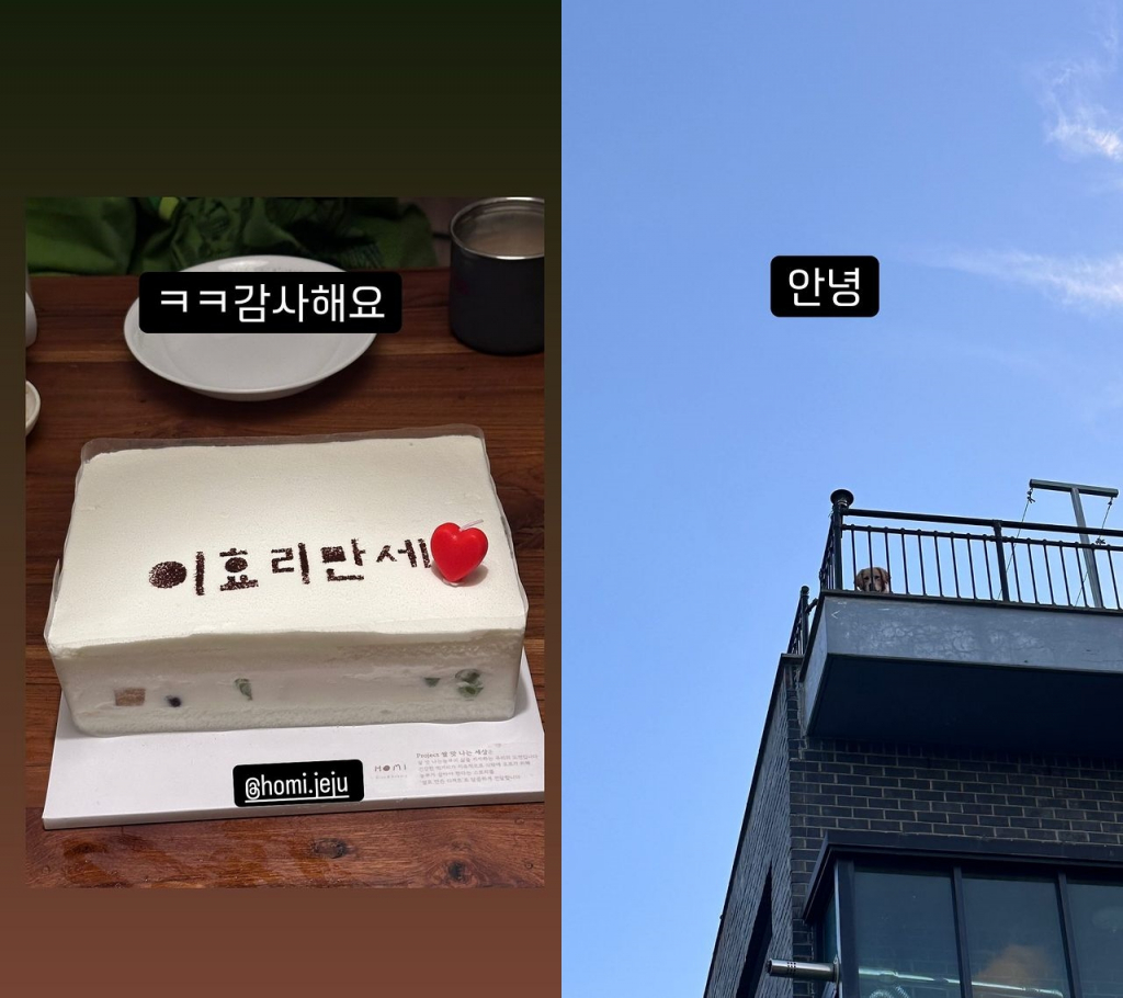 이효리는 25일 자신의 인스타그램에 '이효리 만세'라고 적힌 케이크 사진을 올리며 "감사해요"라는 글을 남겼다.