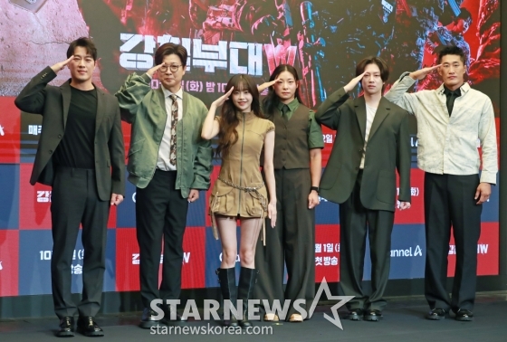 연예방송'강철부대W, 기대하세요'[★포토]발행 : 2024.09.27 ・ 10:42이동훈 기자최영재, 김성주, 츄, 장은실, 김희철, 김동현이 27일 오전 서울 마포구 상암동 스탠포드 호텔에서 진행된 채널A 예능 '강철부대W' 제작발표회에 참석해 포즈를 취하고 있다.최정예 여군 예비역들이 팀을 이뤄 출신 부대의 명예를 걸고 싸우는 밀리터리 서바이벌 프로그램 '강철부대W'는 10월 1일 첫 방송된다. /2024.09.27<저작권자 © 스타뉴스, 무단전재 및 재배포 금지>강철부대W부대강철최영재김성주장은실추천 기사이동훈 기자기자홈좋아요 연예-방송의 인기 급상승 뉴스연예-방송의 최신 뉴스