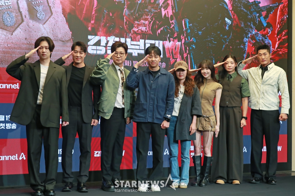연예방송'강철부대W, 기대해도 좋아요'[★포토]발행 : 2024.09.27 ・ 10:46이동훈 기자김희철, 최영재, 김성주, 신재호PD, 강숙경 작가, 츄, 장은실, 김동현이 27일 오전 서울 마포구 상암동 스탠포드 호텔에서 진행된 채널A 예능 '강철부대W' 제작발표회에 참석해 포즈를 취하고 있다.최정예 여군 예비역들이 팀을 이뤄 출신 부대의 명예를 걸고 싸우는 밀리터리 서바이벌 프로그램 '강철부대W'는 10월 1일 첫 방송된다. /2024.09.27<저작권자 © 스타뉴스, 무단전재 및 재배포 금지>강철부대W부대강철김희철최영재김성주추천 기사이동훈 기자기자홈좋아요 연예-방송의 인기 급상승 뉴스연예-방송의 최신 뉴스