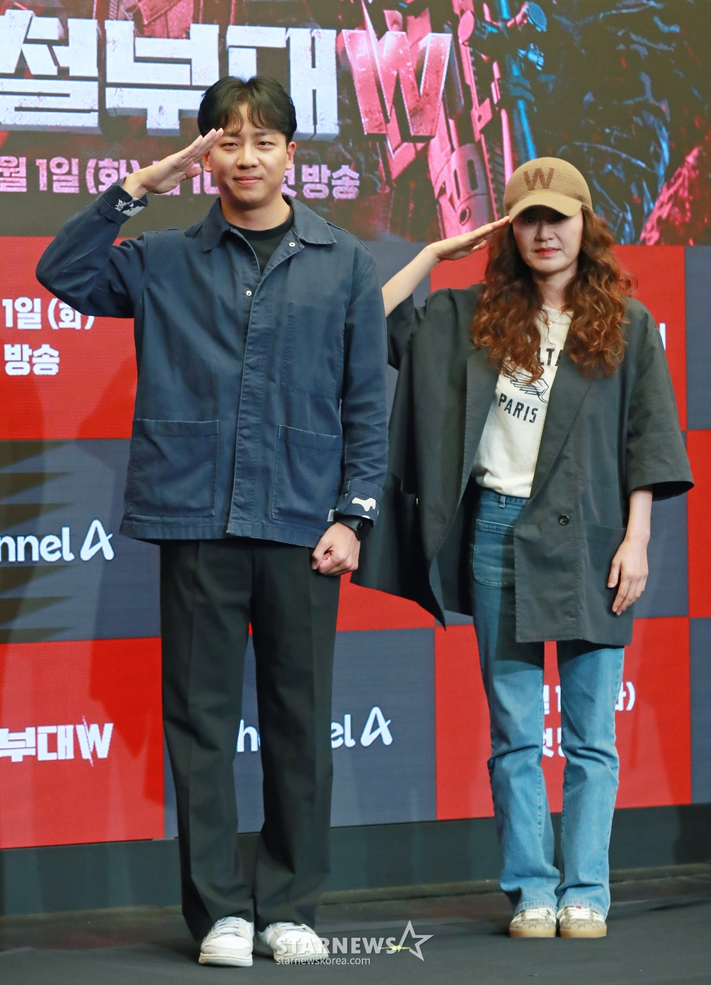 연예방송경례하는 '강철부대W' 신재호 PD-강숙경 작가[★포토]발행 : 2024.09.27 ・ 10:48이동훈 기자신재호 PD, 강숙경 작가가 27일 오전 서울 마포구 상암동 스탠포드 호텔에서 진행된 채널A 예능 '강철부대W' 제작발표회에 참석해 포즈를 취하고 있다.최정예 여군 예비역들이 팀을 이뤄 출신 부대의 명예를 걸고 싸우는 밀리터리 서바이벌 프로그램 '강철부대W'는 10월 1일 첫 방송된다. /2024.09.27<저작권자 © 스타뉴스, 무단전재 및 재배포 금지>강철부대W신재호PD부대강철숙경추천 기사이동훈 기자기자홈좋아요 연예-방송의 인기 급상승 뉴스연예-방송의 최신 뉴스
