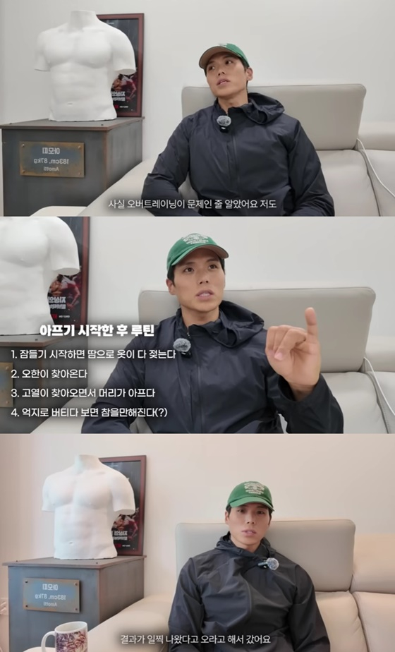 영상 속 그는 "상태가 좋지 않아도 양해 부탁드린다"며 "최근 사실 오버트레이닝이 문제인 줄 알았다. 그냥 컨디션이 안 좋다고 생각했다. 8월 17일 결혼하고 신혼여행 갔다 오고 9월 4일까지 해외 촬영하고 한국에 돌아왔다"고 말했다.