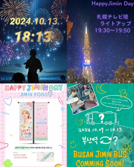 방탄소년단(BTS) 지민의 생일(10월 13일)을 맞아 불꽃놀이와 점등식 등 일본 팬들이 다양한 이벤트로 축하한다.