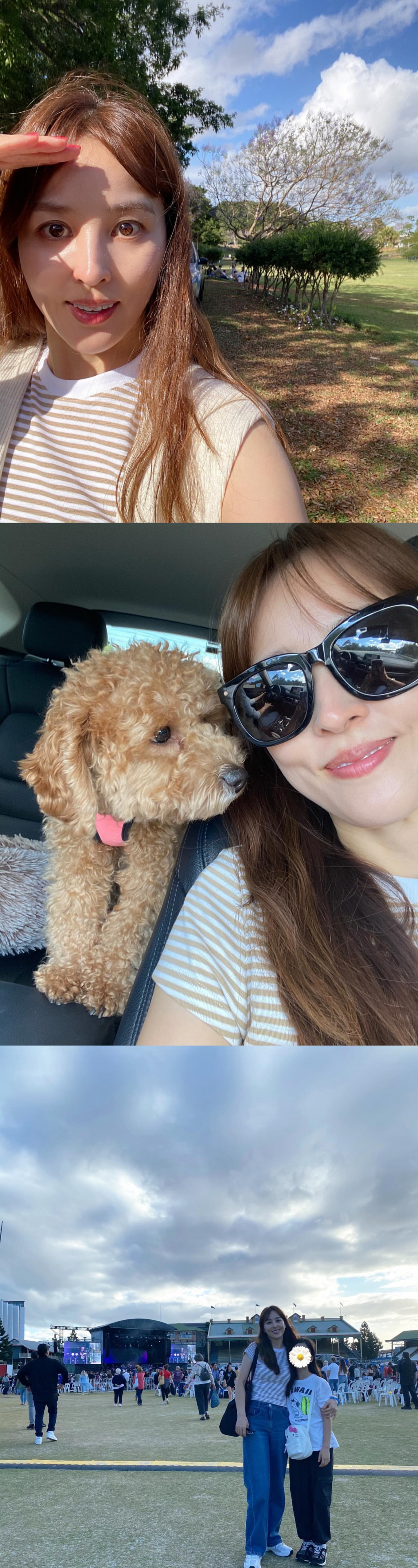 한혜진은 29일 자신의 인스타그램에 브리즈번, 뉴팜 공원 등을 태그하고 "사랑스러운 강아지 헤이즐과"라는 글과 사진을 올렸다.