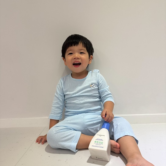 공개 된 사진 속 준범은 얼굴에 로션을 바르고 해맑게 웃고 있다. 갓 목욕을 하고 나온 듯한 모습이 너무나 사랑스럽다.