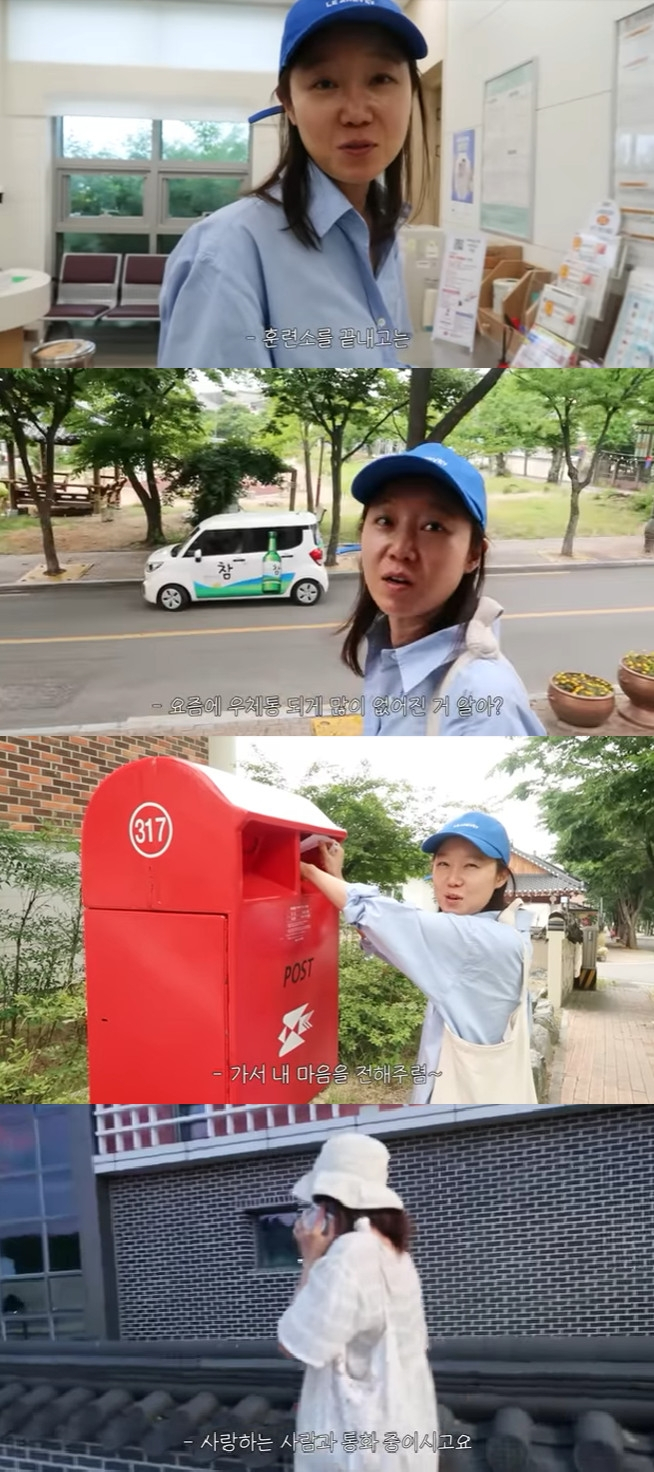 이어 "근데 집을 떠나서 있으면 이상하게 편지 쓰고 싶은 감성이 있다. 혹시 왔다 갔다 하다가 우체통 있으면 넣으려고 했는데 이렇게 우체국이 있다. 요즘에 우체통 되게 많이 없어졌다. 내가 살면서 우체통 찾으러 다닐 줄은 몰랐다"면서 "내 마음을 전해주렴"이라는 말과 함께 편지를 우체통에 넣었다.