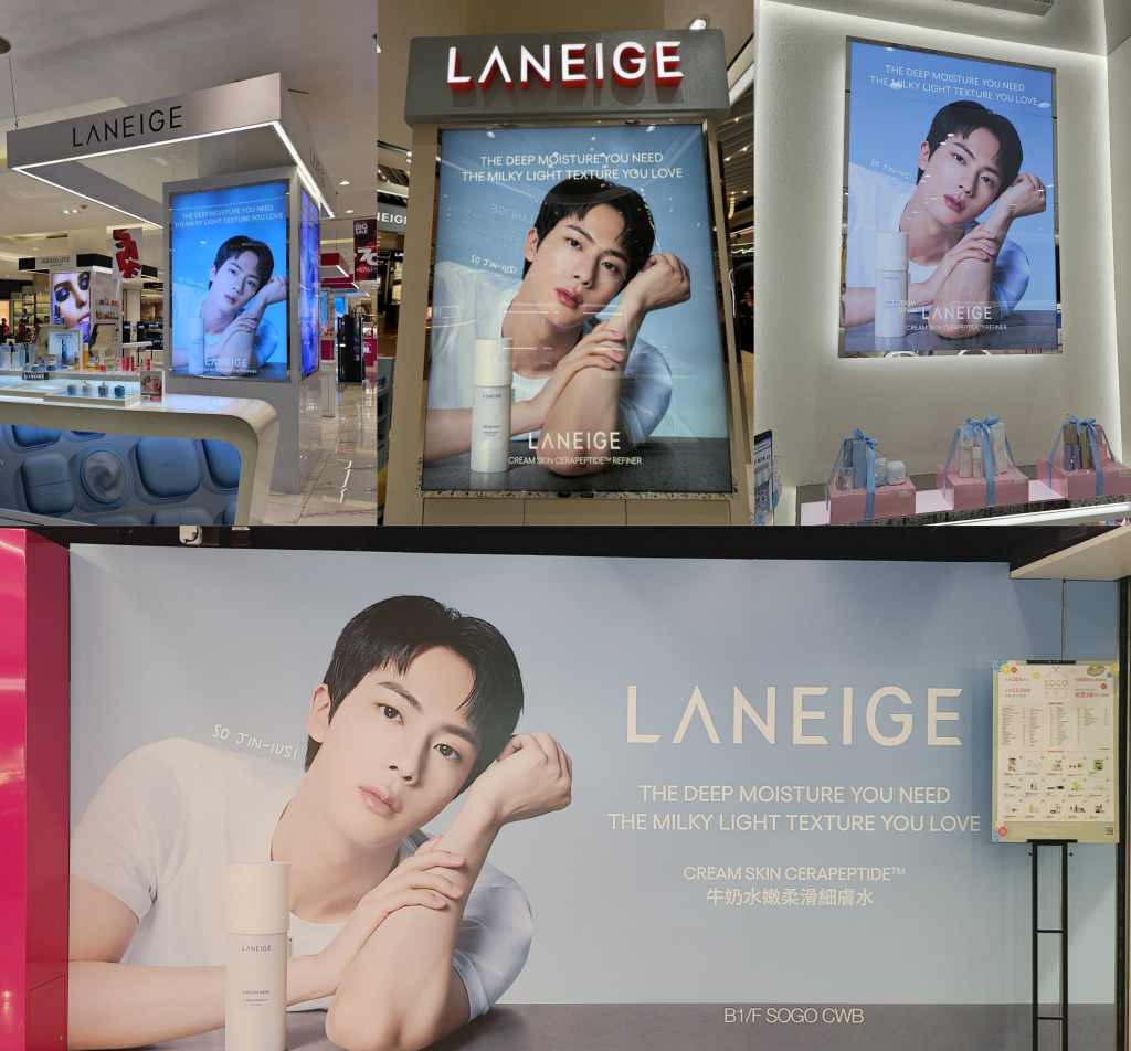 세계에서 주목받는 뷰티 브랜드 라네즈 또한 전 세계적인 대표 슈퍼스타 진이 글로벌 앰버서더가 되자마자 세계 곳곳에서 판매 랭킹 1위와 품절 행진을 일으키며 진은 '미의 남신'이자 '솔드아웃킹'의 위용을 자랑했다.