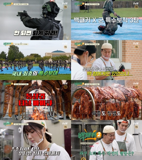 오늘(6일) 오후 방송되는 tvN '백패커2' 19회에서는 대한민국 최초의 특수부대인 특전사 독수리 부대를 방문해 역대급 특수 요리를 준비하는 백종원, 이수근, 허경환, 안보현, 고경표의 이야기가 그려진다.