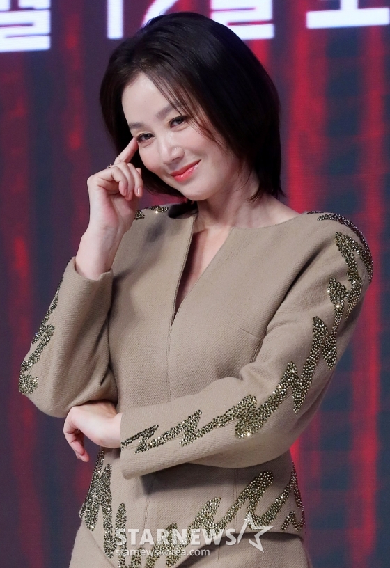 배우 김성령이 11일 오전 서울 강남구 논현동 엘리에나호텔에서 진행된 JTBC 토일드라마 '정숙한 세일즈' 제작발표회에 참석해 포즈를 취하고 있다.