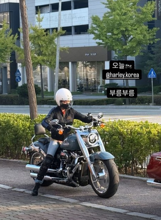이와 함께 이시영은 자전거 도로 위에서 오토바이에 탑승한 인증샷을 올렸다. 그는 오토바이 라이딩을 위해 블랙 재킷, 하얀색 헬멧도 착용했다.