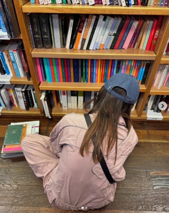 공개 된 사진 속 이효리는 광화문에 위치한 교보문고를 방문한 모습. 서점에서 책을 고르고 있는 뒷모습과 더불어 벤치에서 여유를 즐기는 모습이 인상 깊다.