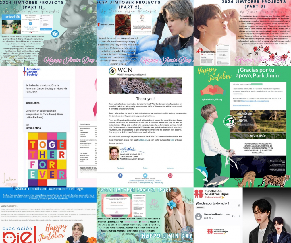 지민의 아시아 태평양 팬들 'JIMINNATION_ASOC'은 '짐토버(지민+악토버)'를 기념해 지민(JIMIN)의 이름으로 세이브 더 칠드런에 기부한 데 이어 국경없는 의사회(MSF)에도 기부, 선한 영향력을 실천했다.