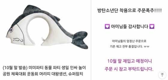 방탄소년단(BTS) 진이 착용한 참치 머리띠가 순식간에 품절되며 또 한 번 '솔드아웃킹' 면모를 드러냈다.