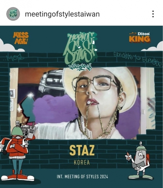 'Meeting of Styles International Graffiti Festival Taiwan' 인스타그램 공식 계정에 국내 그래피티 아티스트 이종배(예명 STAZ) 작가가 그린 뷔의 얼굴이 게재됐다.