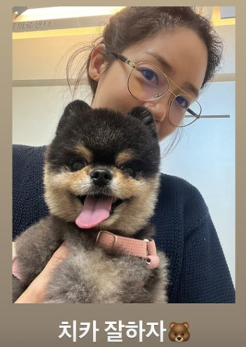 공개 된 사진 속 성유리는 머리를 질끈 묶고 안경을 쓴채, 반려견을 안고 있다. 성유리는 반려견의 양치를 시키려는 듯 "치카 잘하자"라고 썼다.