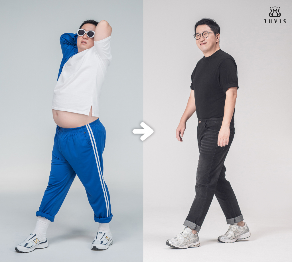 다이어트 전문업체 쥬비스는 21일 체중 감량에 성공한 정형돈의 모습을 공개해 눈길을 끌었다.