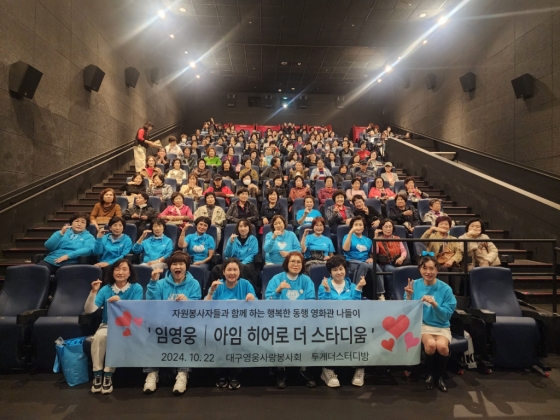 대구영웅사랑봉사회와 투게더스터디방은 '임영웅│아임 히어로 더 스타디움' 영화에 대한적십자사 대구지사를 비롯한 대구 지역 사회복지시설에서 활동하고 있는 자원봉사들 151명을 초청, 단체 관람하며 영화로 힐링하는 시간을 가졌다.