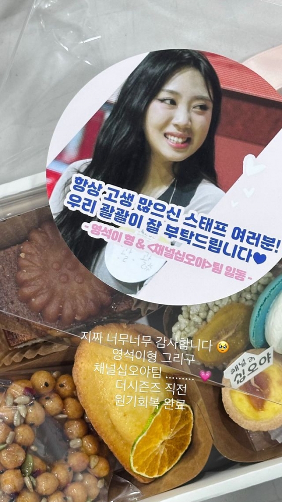 공개된 사진 속에는 이영지가 MC를 맡은 KBS 2TV '더 시즌즈-이영지의 레인보우' 촬영장에 도착한 간식이 담겨있다. 해당 간식은 나영석 PD와 유튜브 채널 '채널 십오야' 팀이 보낸 것으로 보인다.