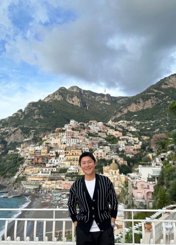 공개된 사진 속엔 명품 C 브랜드 카디건을 착용한 조세호의 모습이다. 그는 밝은 미소를 지으며 유럽 풍경을 배경으로 포즈를 취하며 자연스러운 미소를 보인다.
