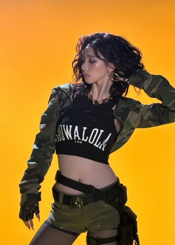 공개된 사진 속엔 카리나가 파마머리를 하고 앨범 관련 촬영을 진행하고 있다. 특히 그는 밀러터리 룩과 더불어 톤다운된 메이크업을 시도해 카리스마를 풍긴다.