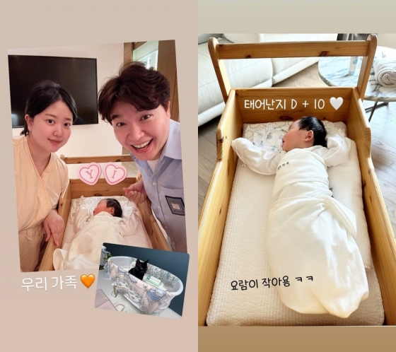 24일 박수홍, 김다예 부부는 인스타그램에 "태어난 지 D+10"이라며 "요람이 작아요"라는 글과 함께 사진을 공개했다.