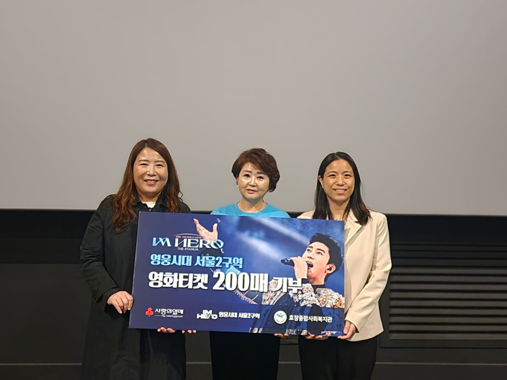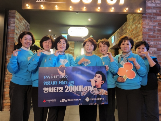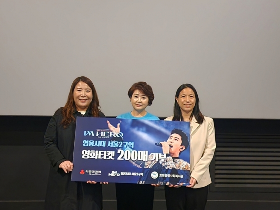 임영웅 팬클럽 영웅시대 서울 2구역은 10월 24일 문화 나눔의 날을 맞아 서울 용산 CGV에서 영웅시대 서울 2구역 라벤다(이현정) 방장과 팬클럽 회원 및 서울 사랑의 열매, 용산구립 효창종합사회복지관 관계자들이 참석한 가운데 '임영웅 | 아임 히어로 더 스타디움' 영화 티켓 200매를 효창종합사회복지관에 기부했다.