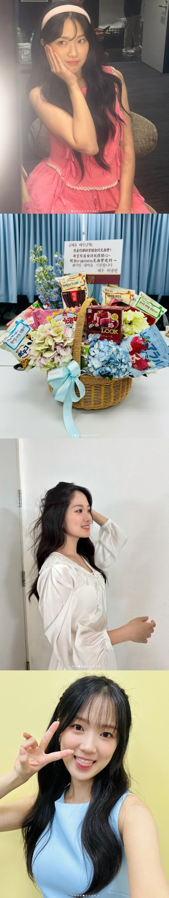 그는 대기실에서 다양한 원피스 의상을 입고 팬미팅을 준비하며 설레는 모습을 드러냈다. 이 가운데 대만 배우 허광한은 "팬미팅 대박을 기원합니다"라며 김혜윤에게 축하 꽃다발을 보내 눈길을 끌었다.