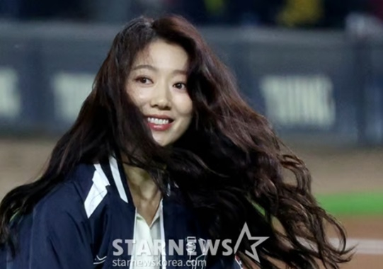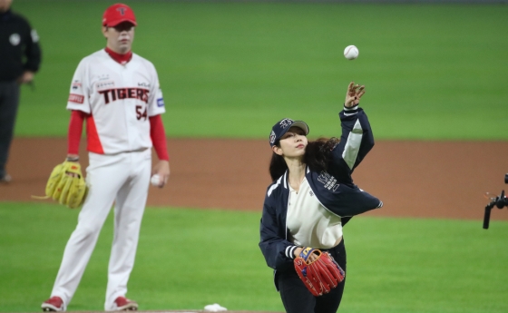 박신혜는 28일 오후 광주-기아챔피언스필드에서 열린 '2024 KBO 포스트시즌 한국시리즈 5차전' KIA-삼성전 경기에 시구자로 마운드에 올랐다.